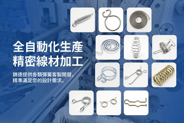 我們擁有深厚的專業技術與先進的生產設備,專精於各式壓縮彈簧、拉伸彈簧、板簧、扭轉彈簧及金屬線材折彎成形加工。