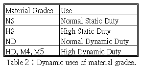 材料表面磨光度也用來區分等級,因此動態負荷可參閱表2。
